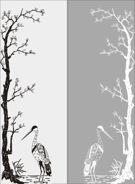 Эскиз векторного рисунка "цапля рядом с деревом". При желании в соответствующем разделе нашего сайта, Вы сможете заказать шкаф купе с этим рисунком на дверях.