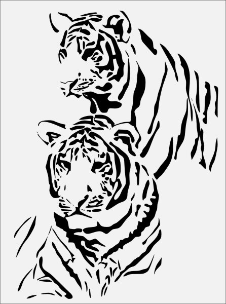Эскиз векторного рисунка "два тигра". При желании в соответствующем разделе нашего сайта, Вы сможете заказать шкаф купе с этим рисунком на дверях.