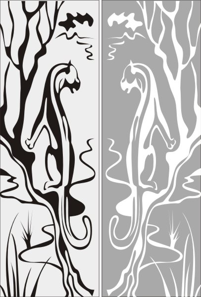 Эскиз векторного рисунка "пантера на дереве". При желании в соответствующем разделе нашего сайта, Вы сможете заказать шкаф купе с этим рисунком на дверях.