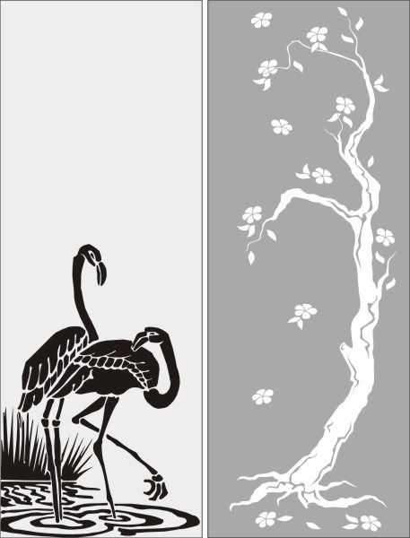 Эскиз векторного рисунка "фламинго рядом с цветущим деревом". При желании в соответствующем разделе нашего сайта, Вы сможете заказать шкаф купе с этим рисунком на дверях.