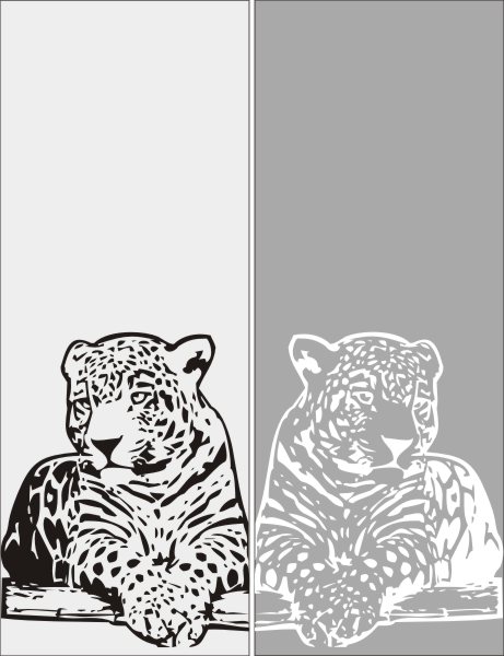 Эскиз векторного рисунка "два леопарда". При желании в соответствующем разделе нашего сайта, Вы сможете заказать шкаф купе с этим рисунком на дверях.