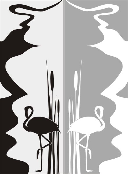 Эскиз векторного рисунка "фламинго в камышах". При желании в соответствующем разделе нашего сайта, Вы сможете заказать шкаф купе с этим рисунком на дверях.