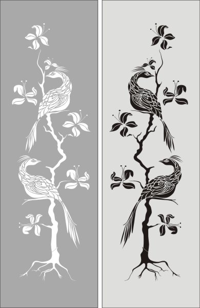 Эскиз векторного рисунка "жар птицы на дереве". При желании в соответствующем разделе нашего сайта, Вы сможете заказать шкаф купе с этим рисунком на дверях.