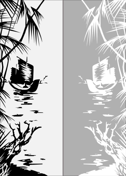 Эскиз векторного рисунка "два старинных парусных корабля". При желании в соответствующем разделе нашего сайта, Вы сможете заказать шкаф купе с этим рисунком на дверях.
