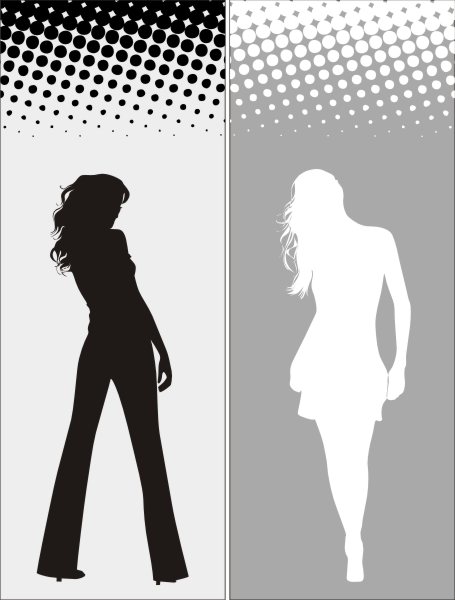 Эскиз векторного рисунка "силуэты двух девушек". При желании в соответствующем разделе нашего сайта, Вы сможете заказать шкаф купе с этим рисунком на дверях.