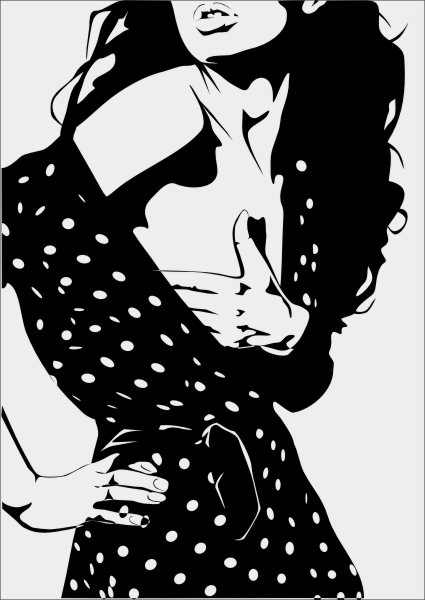 Эскиз векторного рисунка "девушка в платье в горошину". При желании в соответствующем разделе нашего сайта, Вы сможете заказать шкаф купе с этим рисунком на дверях.