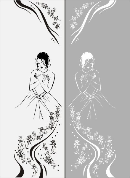 Эскиз векторного рисунка "девушка с цветами". При желании в соответствующем разделе нашего сайта, Вы сможете заказать шкаф купе с этим рисунком на дверях.