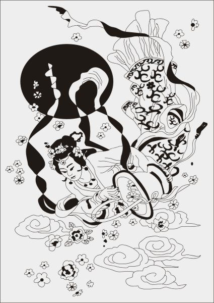Эскиз векторного рисунка "девушка с цветами в японском стиле". При желании в соответствующем разделе нашего сайта, Вы сможете заказать шкаф купе с этим рисунком на дверях.