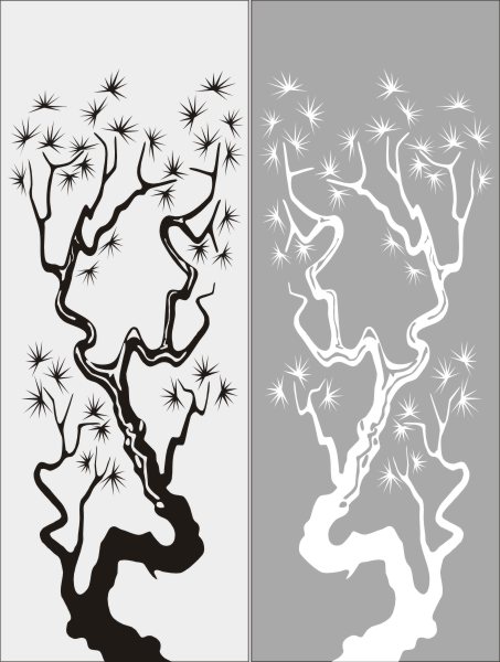 Эскиз векторного рисунка "два изогнутых дерева". При желании в соответствующем разделе нашего сайта, Вы сможете заказать шкаф купе с этим рисунком на дверях.