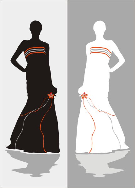 Эскиз векторного рисунка "силуэт девушки в длинном платье". При желании в соответствующем разделе нашего сайта, Вы сможете заказать шкаф купе с этим рисунком на дверях.