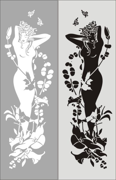 Эскиз векторного рисунка "обнажённая девушка с цветами и бабочками". При желании в соответствующем разделе нашего сайта, Вы сможете заказать шкаф купе с этим рисунком на дверях.