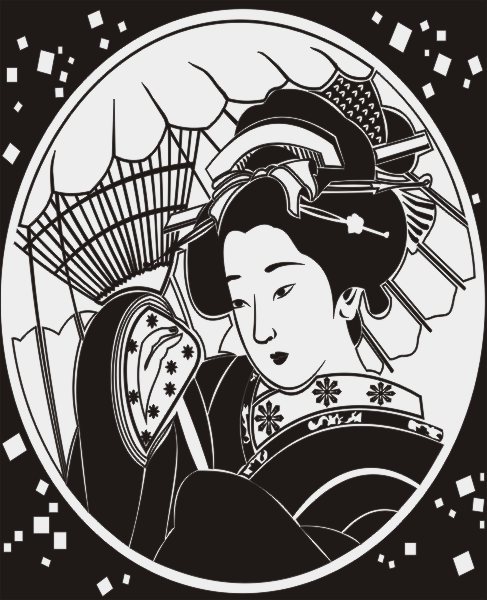Эскиз векторного рисунка "японская девушка с зонтом". При желании в соответствующем разделе нашего сайта, Вы сможете заказать шкаф купе с этим рисунком на дверях.