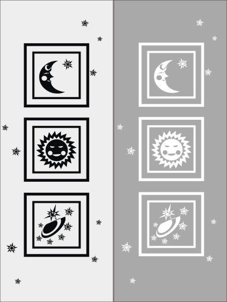 Эскиз векторного рисунка "солнце луна юпитер в квадратных рамках". При желании в соответствующем разделе нашего сайта, Вы сможете заказать шкаф купе с этим рисунком на дверях.