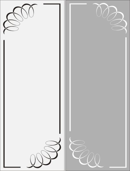 Эскиз векторного рисунка "рамка с завитушками в углах". При желании в соответствующем разделе нашего сайта, Вы сможете заказать шкаф купе с этим рисунком на дверях.