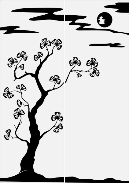 Эскиз векторного рисунка "пейзаж с деревом луной". При желании в соответствующем разделе нашего сайта, Вы сможете заказать шкаф купе с этим рисунком на дверях.