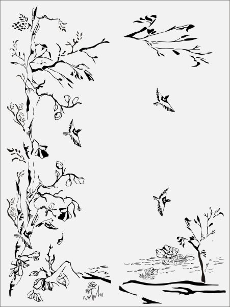 Эскиз векторного рисунка "птички летают вокруг дерева". При желании в соответствующем разделе нашего сайта, Вы сможете заказать шкаф купе с этим рисунком на дверях.