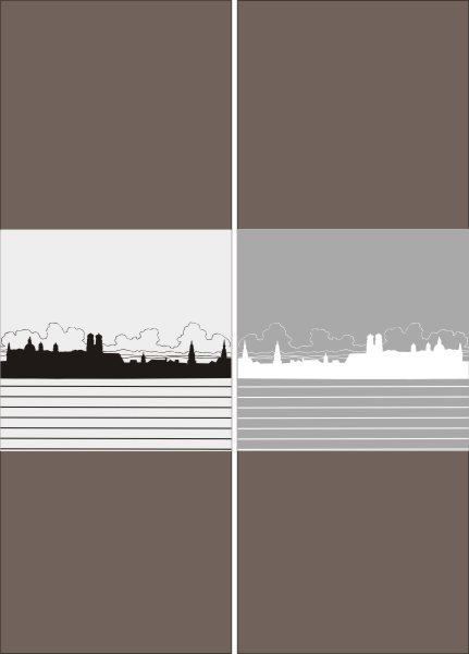 Эскиз векторного рисунка "город на горизонте". При желании в соответствующем разделе нашего сайта, Вы сможете заказать шкаф купе с этим рисунком на дверях.