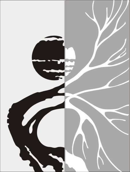 Эскиз векторного рисунка "дерево с луной". При желании в соответствующем разделе нашего сайта, Вы сможете заказать шкаф купе с этим рисунком на дверях.