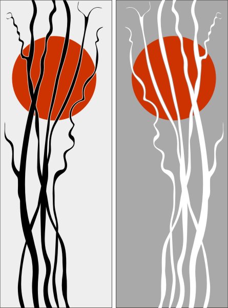 Эскиз векторного рисунка "голые ветки на фоне солнца". При желании в соответствующем разделе нашего сайта, Вы сможете заказать шкаф купе с этим рисунком на дверях.
