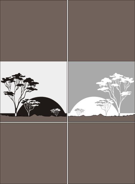 Эскиз векторного рисунка "африканский пейзаж с деревом". При желании в соответствующем разделе нашего сайта, Вы сможете заказать шкаф купе с этим рисунком на дверях.