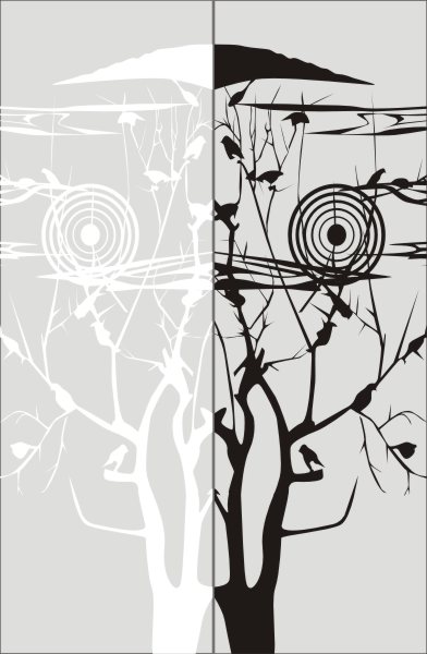 Эскиз векторного рисунка "голое дерево с птицами". При желании в соответствующем разделе нашего сайта, Вы сможете заказать шкаф купе с этим рисунком на дверях.