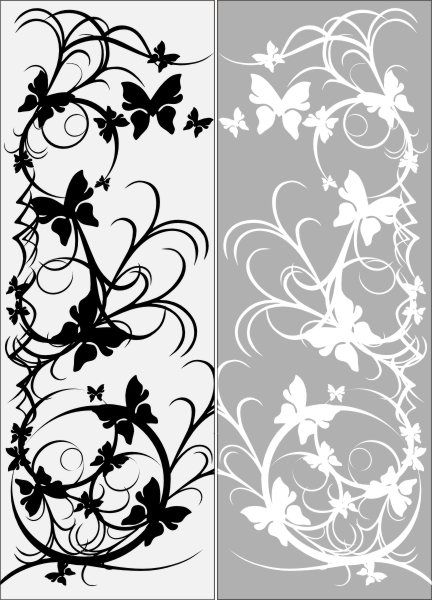 Эскиз векторного рисунка "абстрактное зубные растения с бабочками". При желании в соответствующем разделе нашего сайта, Вы сможете заказать шкаф купе с этим рисунком на дверях.