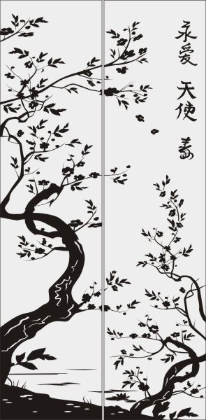 Эскиз векторного рисунка "дерево с иероглифами". При желании в соответствующем разделе нашего сайта, Вы сможете заказать шкаф купе с этим рисунком на дверях.