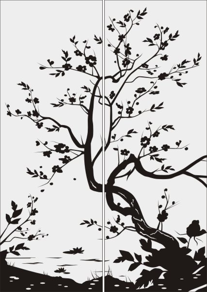 Эскиз векторного рисунка "дерево на фоне озера". При желании в соответствующем разделе нашего сайта, Вы сможете заказать шкаф купе с этим рисунком на дверях.