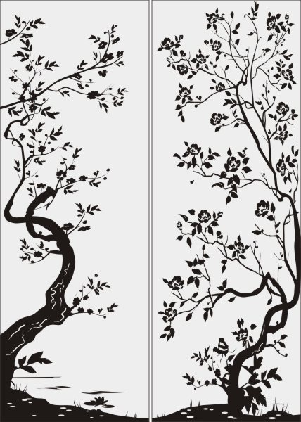 Эскиз векторного рисунка "пейзаж с двумя деревьями". При желании в соответствующем разделе нашего сайта, Вы сможете заказать шкаф купе с этим рисунком на дверях.