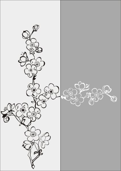 Эскиз векторного рисунка "ветка сакуры с большими цветами". При желании в соответствующем разделе нашего сайта, Вы сможете заказать шкаф купе с этим рисунком на дверях.