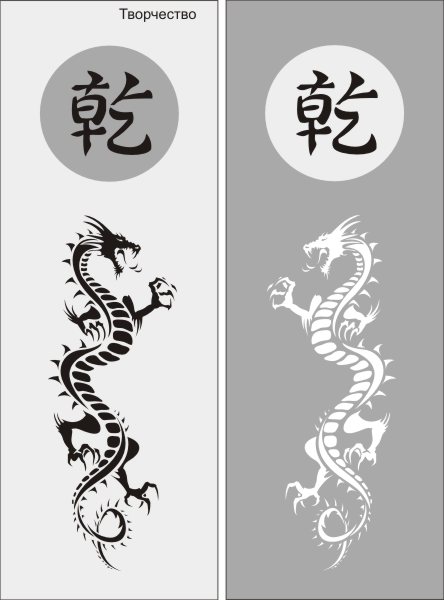 Векторный рисунок иероглифы и два дракона