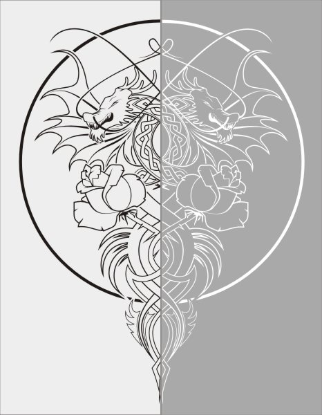Эскиз векторного рисунка "дракон с крыльями". При желании в соответствующем разделе нашего сайта, Вы сможете заказать шкаф купе с этим рисунком на дверях.