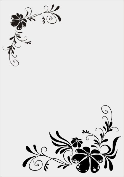 Эскиз векторного рисунка "большие цветы с узором в углах". При желании в соответствующем разделе нашего сайта, Вы сможете заказать шкаф купе с этим рисунком на дверях.