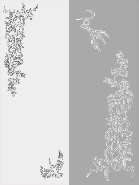 Эскиз векторного рисунка "большие цветы с птицами". При желании в соответствующем разделе нашего сайта, Вы сможете заказать шкаф купе с этим рисунком на дверях.